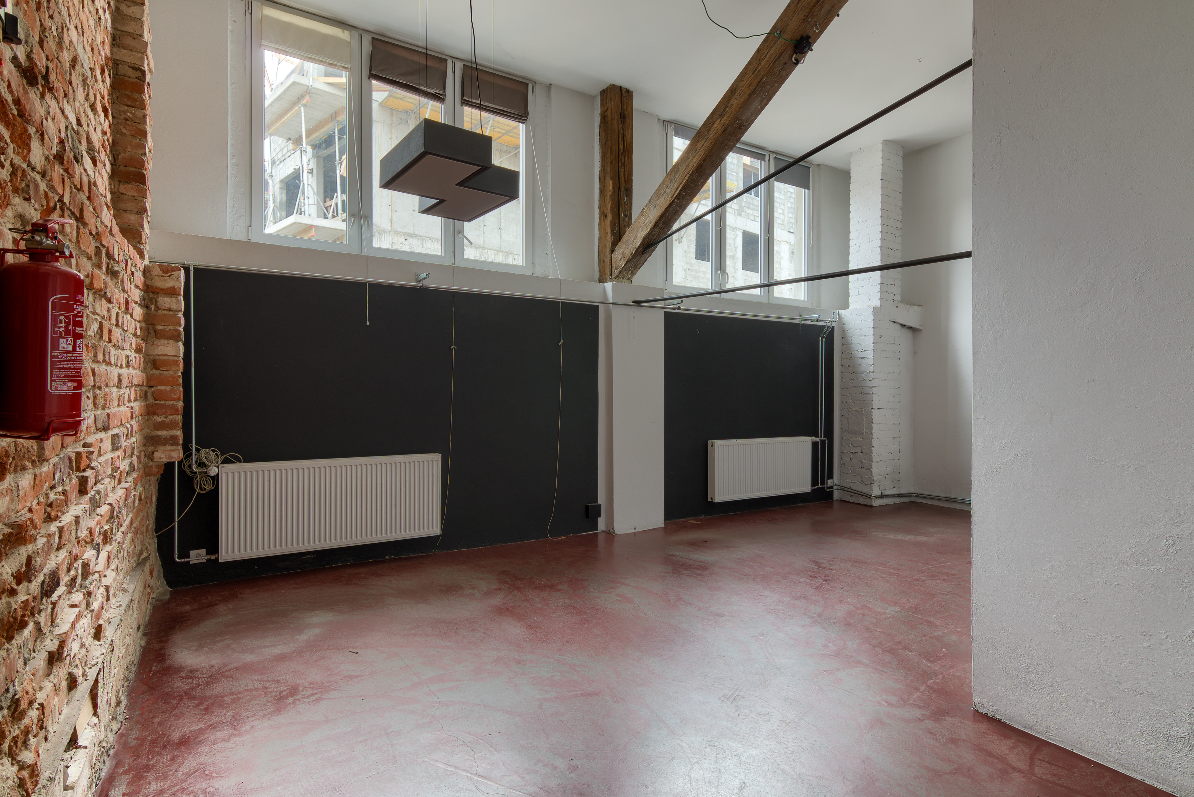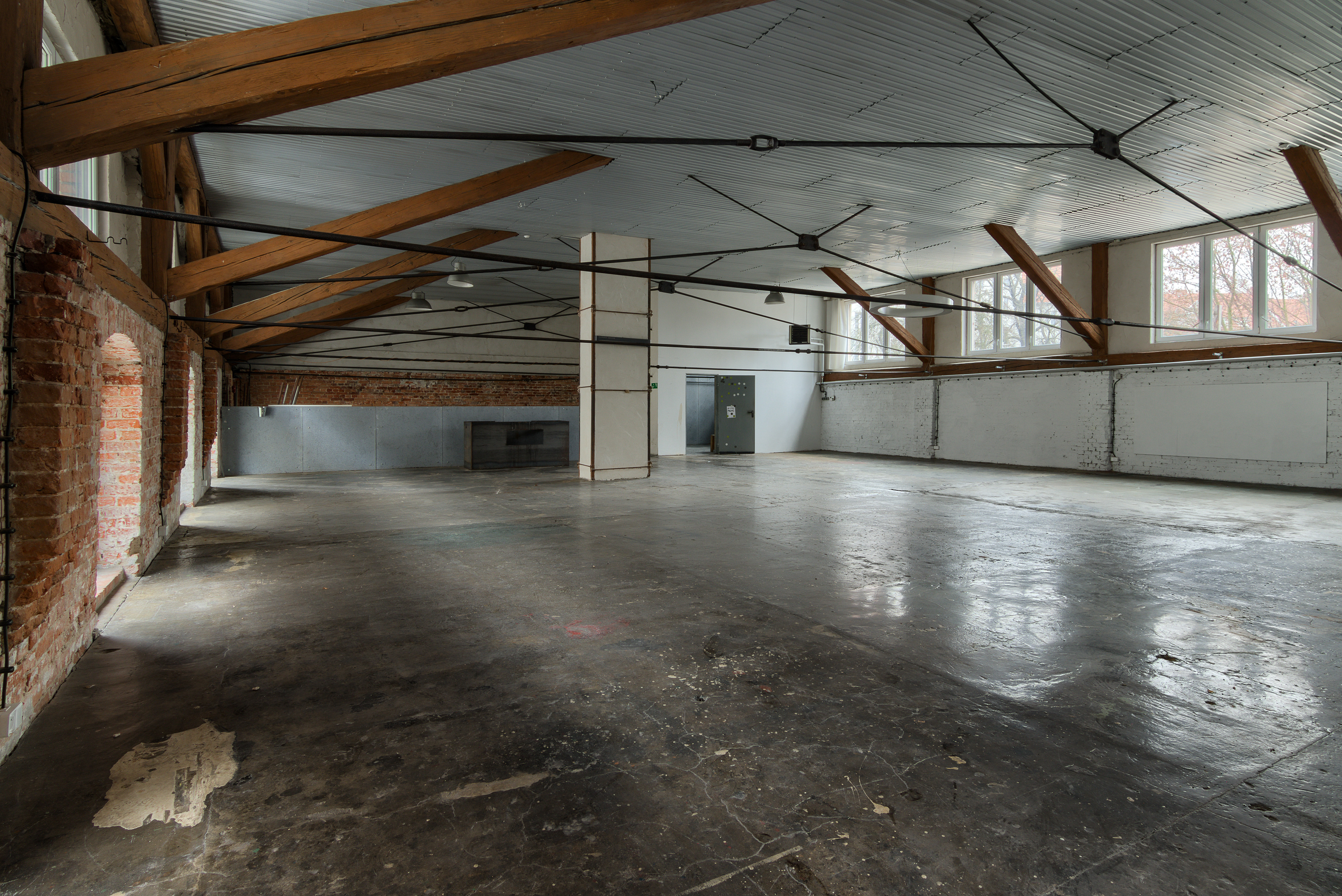 Loftowe, industralne wnętrza hali zlokalizowanej w centrum miasta, ukrytej w 2 linii zabudowy dają poczucie wolności. Przestrzeń możliwa do wykreowania na 1000 sposobów. Posiad dwa poziomy, które nadają jej dodatkowej atrakcyjności. Na dale pomieszczenia techniczne, u góry hala i dwa "pokoje". W jednym z nich wydzielono toalety. Widoczne ściągi, beton - surowy charakter miejsca ocieplony cegłą i elementami drewnianymi konstrukcji całego budynku.